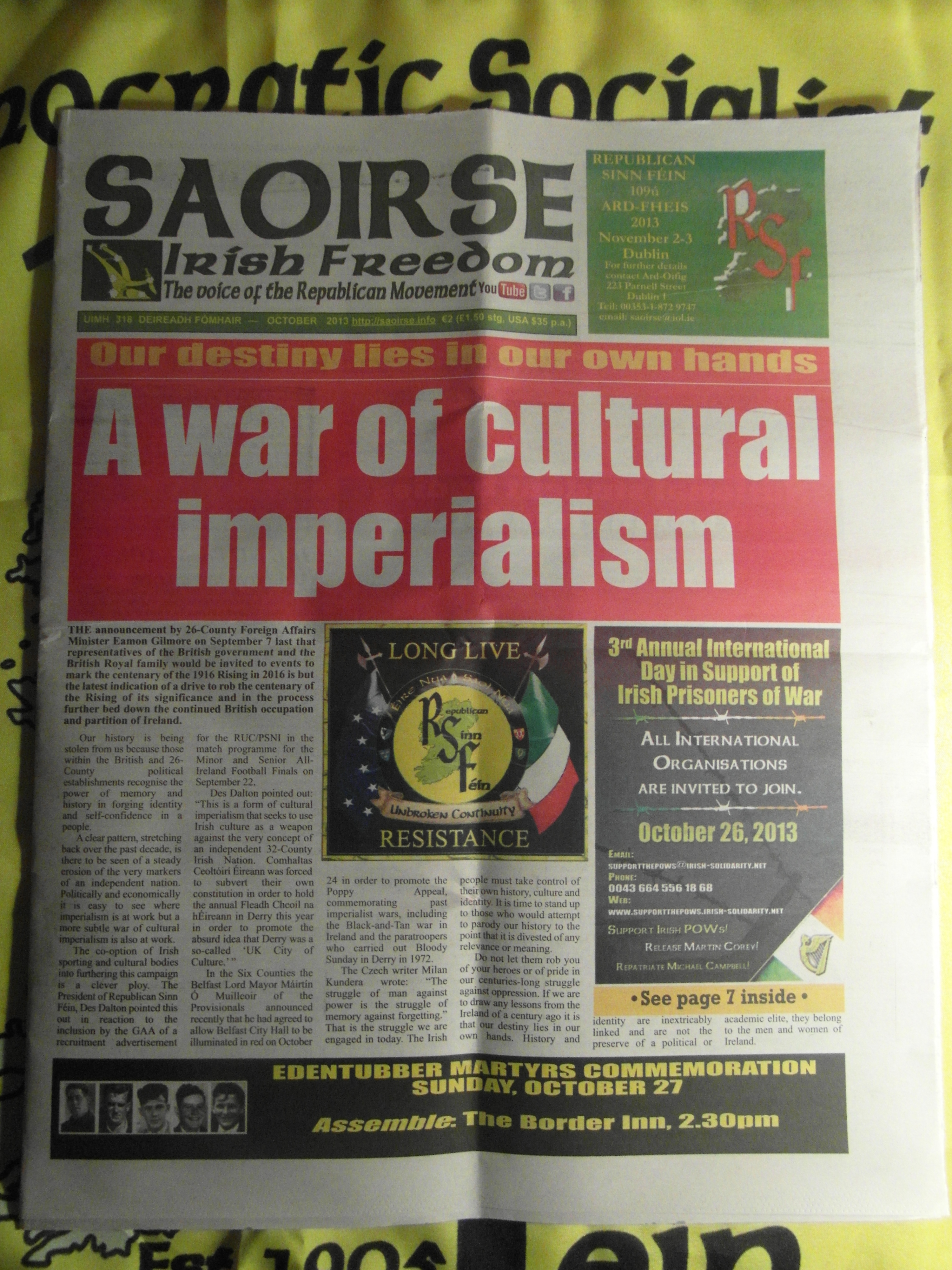“The announcement by 26-County Foreign Affairs Minister Eamon Gilmore on September 7 last that representatives of the British Royal family would be invited to events to mark the centenary of the 1916 Rising in 2016 is but the latest indication of a drive to rob the centenary of the Rising of its significance and in the process further bed down the continued British occupation and partition of Ireland.”