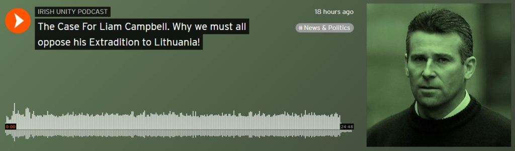 The Case for Liam Campbell. Why we must all oppose his Extradition to Lithuania! By Administrator 01 on Lúnasa 20, 2020 Share Irish Republican Media:Tweet Click to share on WhatsApp (Osclófar fuinneog nua) WhatsApp ‹ R.I.P. Tom MitchellCosy golden circle of politicians, judiciary and media constitutes the 26-County state establishment ›Ranganna:Latest Updates, POW: Statements